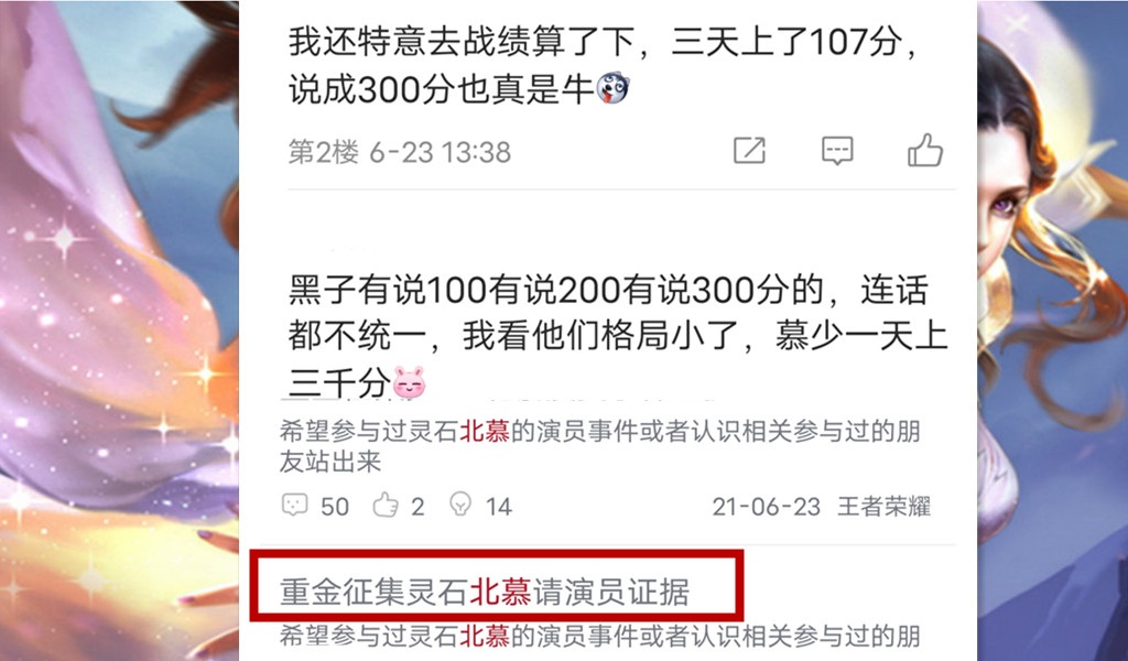 不过不得不说虽然北慕所在的公会传出过不少“请演员”的消息,但是北慕这次实锤确实是不多,当初爆料博主虽然说着实锤可却没有放出过具体消息。一直抓不到“证据”的网友自然也不甘心,某些平台中关于“重金征集实锤”的帖子甚至越来越多。