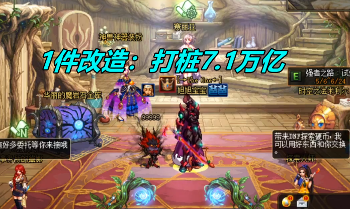 到目前为止呢,宝哥只带一件改造的前提下,打桩伤害大概在7.1万亿左右,讲道理地说,这个伤害已经是非常高了,如果单纯对比增幅而言,放眼整个阿拉德大陆,也照不出第二位勇士呢。