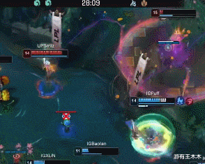 然而在争夺龙魂的团战中,UP队员却开始轮流犯病。IG狗熊上来开团,被打得半血逃跑,UP中上辅却毫无配合,先是女坦闪现空大白给,再是鳄鱼进场洗完澡回家,赵信浪费金身闪现,三人轮流秀起下限,使得IG队员全身而退。要是UP战队无脑冲上去,都不知道IG战队要怎么挡得住,只能说UP这波车轮战真的是究极丑陋!