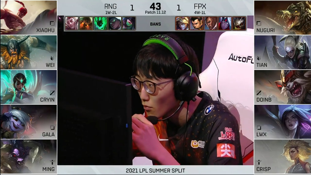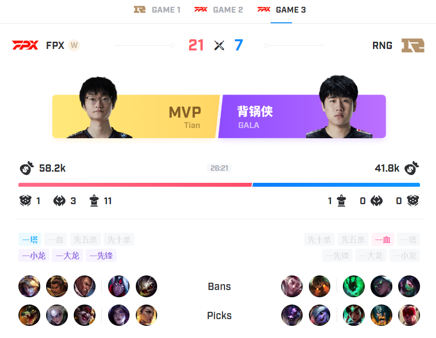 RNG的BP其实是在适应当前版本的,包括在针对FPX的中上摇摆鳄鱼上也做得很好,但问题是,每次都让FPX拿到了很舒服的、主动性更强的阵容,