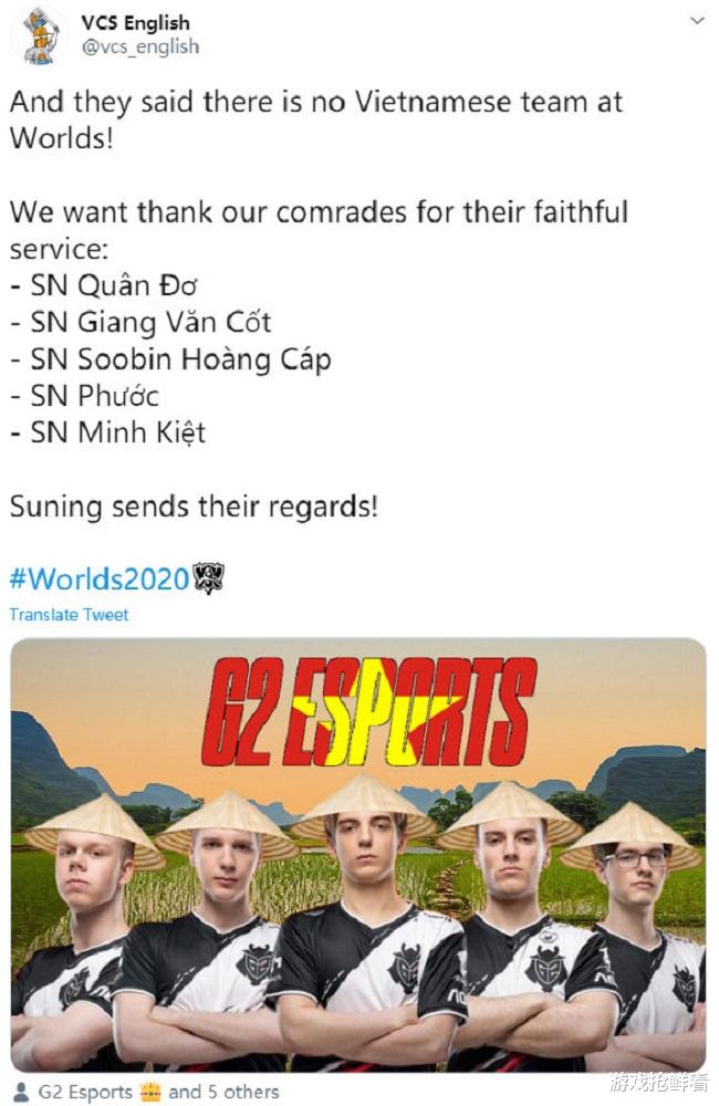 当然对于这位不理智的网友的言论,LPL观众也是很今天新开传奇私服网不满意的,毕竟苏宁能够有这样的成绩出线,是凭自己的实力打出来的,TL战队如果有足够的强的实力,也不至于要看别人的脸色来决定生死,这种说法是没有道理的,大家看个笑话就过去了,这个小组的比赛结束之后,越南赛区英文流更新动态表示G2战队就是越南赛区的,还将G2的合照P成了越南风,不得不说各赛区的观众都相当会整活。