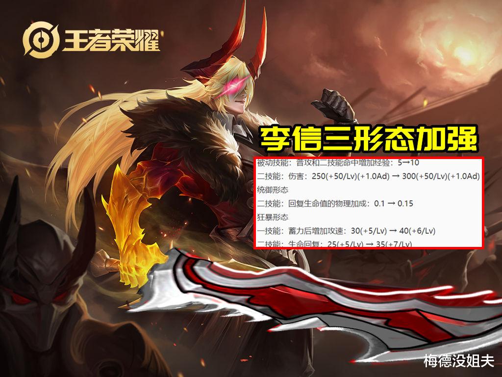 李信——三形态全面加强常态:普攻、二技能增加经验翻倍,二技能基础伤害提升