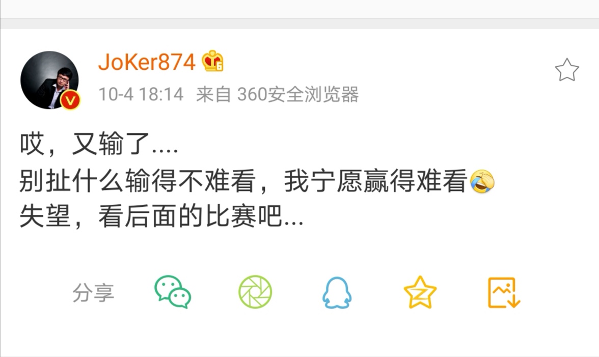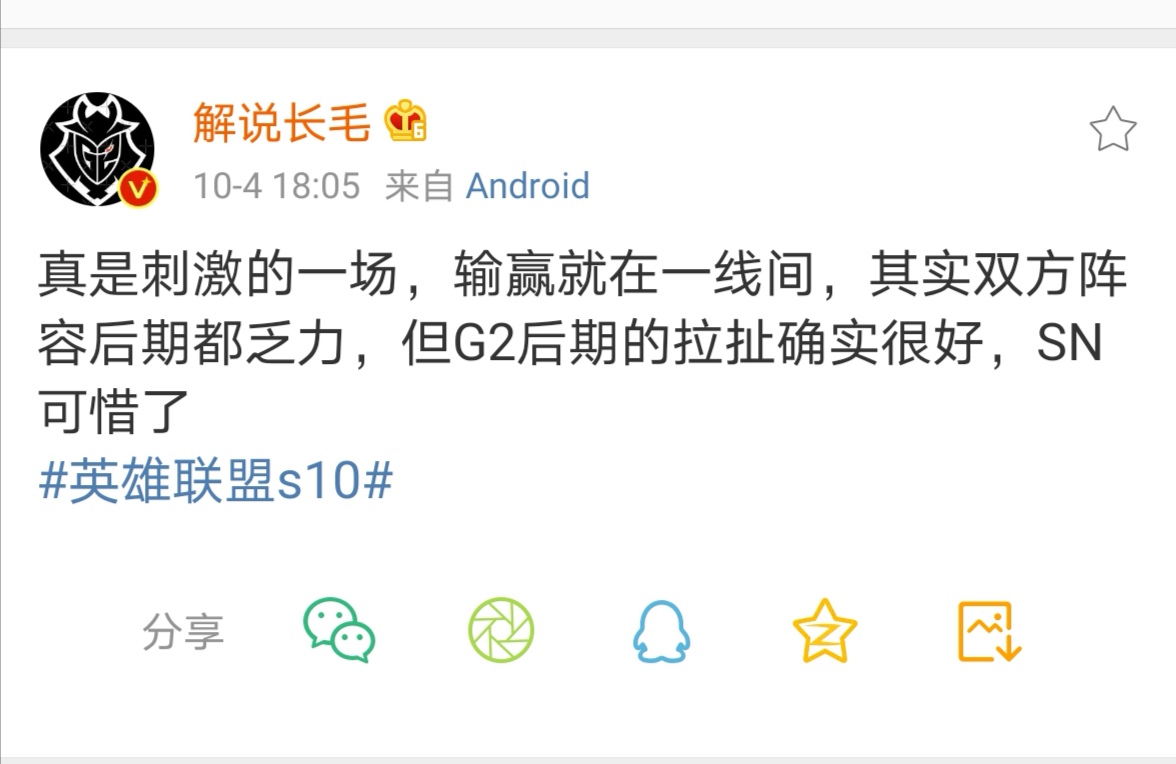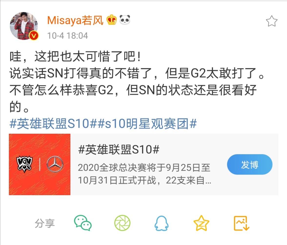 咱们LPL是一片可惜之声,而赢了的G2在推特上虽然一向乐观的整活,但是他们的打野却是有些崩溃了。
