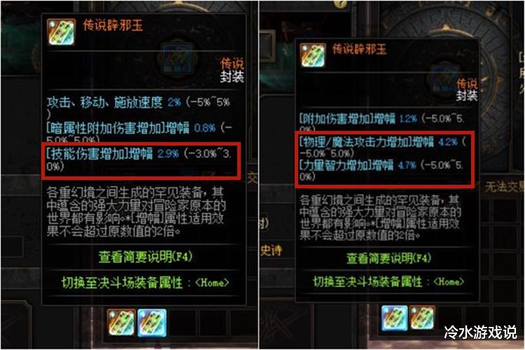 最近就见到一位大佬,拿着上述两个高价值辟邪玉来了一波冲刺,这每个辟邪玉从拍传奇世界单机版诗风卖行买都是天价。大家看我上图圈出来的属性,第一条是增加2.9%的技能伤害,第二个是增加4.2%的双攻,第三条是增加4.7%的力智。这两个辟邪玉合成的话,理想状态肯定是把3条好属性都合上去,如果合出来的属性真是这样的话感觉游戏币绝对拿不下来,具体多少钱就得看有没有土豪出钱了。